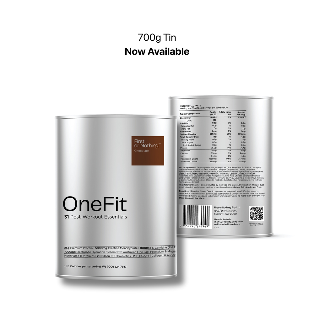 You're getting the same 700g of our proprietary OneFit® blend, so you can’t go wrong. The key difference is convenience. Sachets are made for life on the go, just tear, mix with water, and you’re set. The tin is perfect for keeping on your kitchen bench or office desk for easy daily use