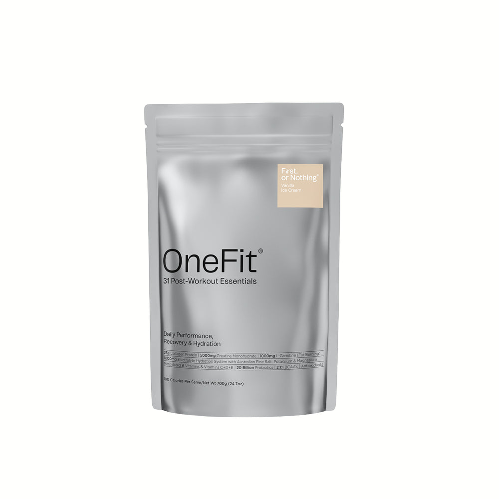 OneFit® is a post-exercise recovery blend with 31 ingredients—including 25 g protein, 5 g creatine, electrolytes, and a full spectrum of vitamins & minerals. It’s built for post-workout, but can be taken anytime you want easy protein + hydration.
