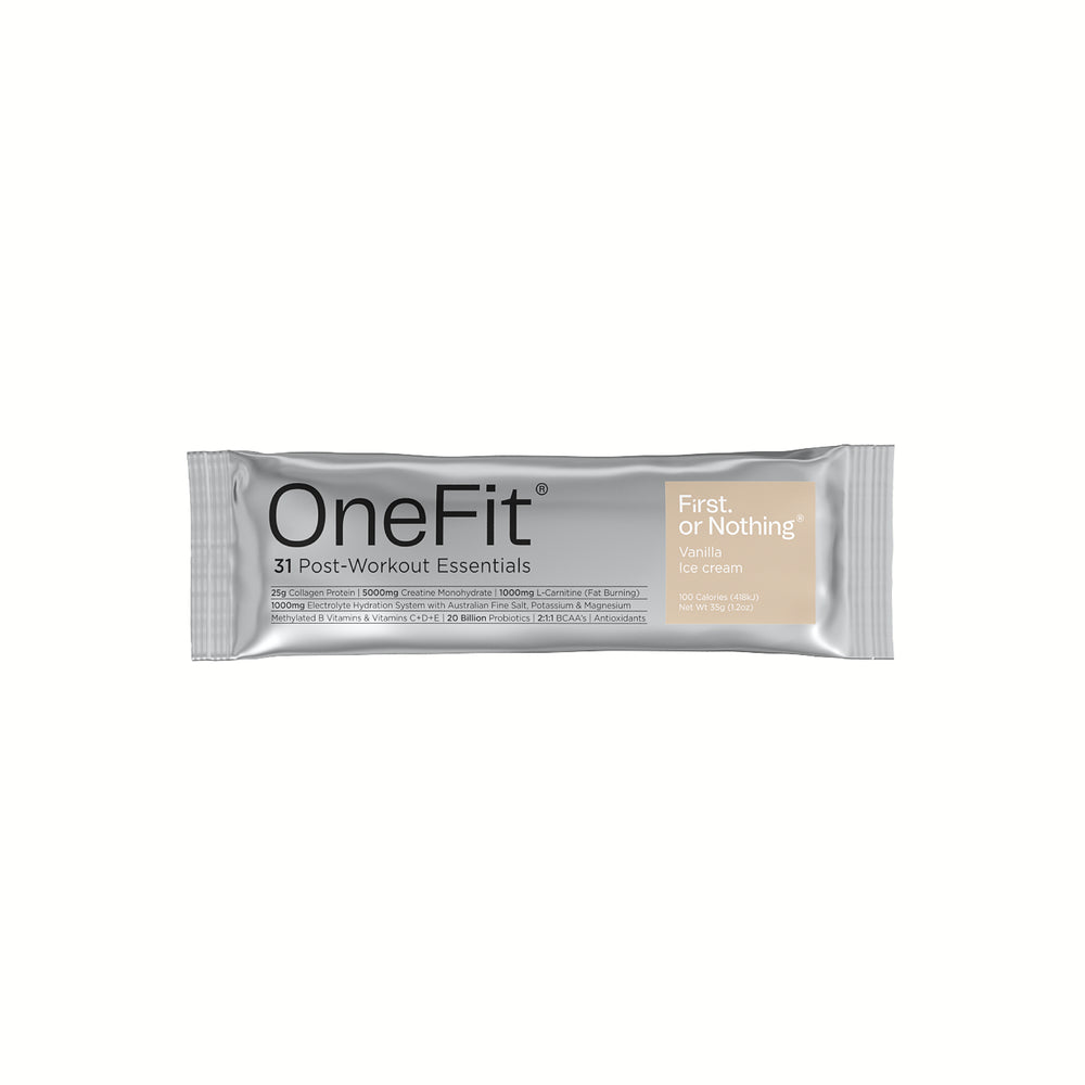 OneFit® simplifies your stack. It replaces protein, creatine monohydrate, an electrolyte drink, BCAAs, L-carnitine, and a daily multi—in one sachet.
