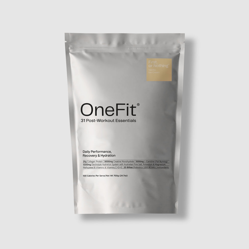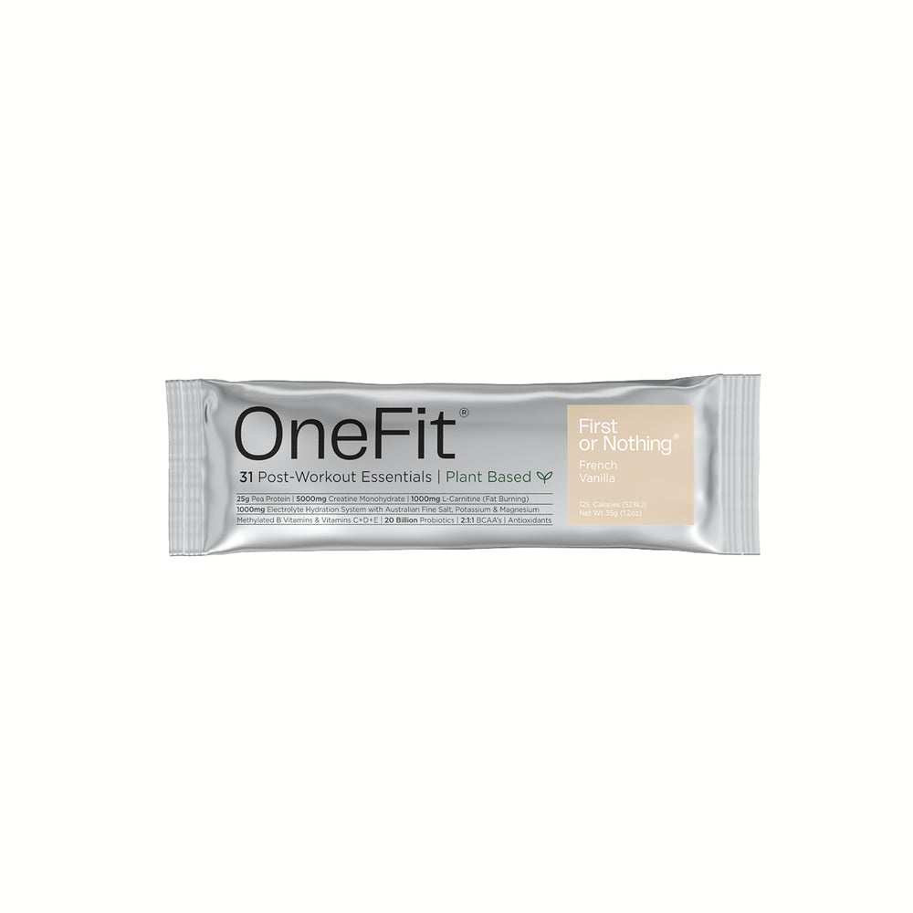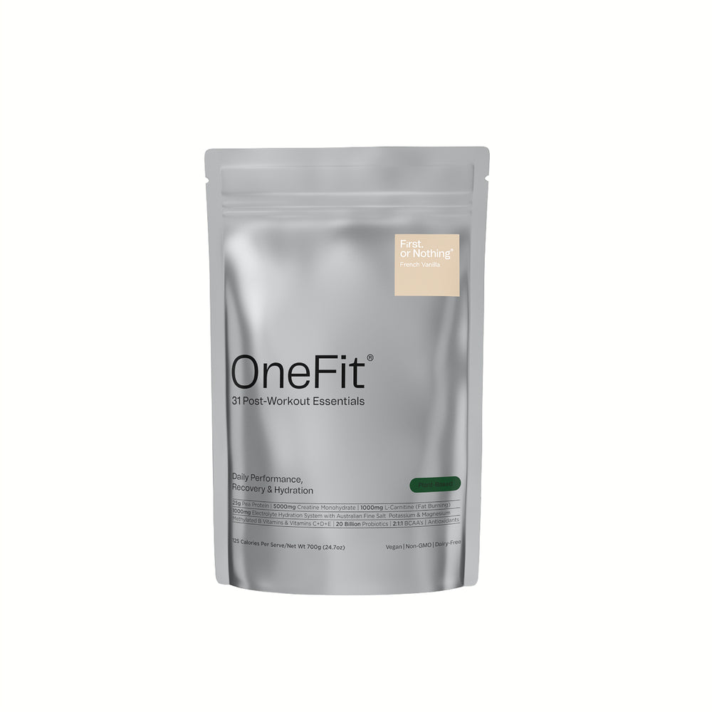 OneFit® is a post-exercise recovery blend with 31 ingredients—including 25 g protein, 5 g creatine, electrolytes, and a full spectrum of vitamins & minerals. It’s built for post-workout, but can be taken anytime you want easy protein + hydration.
